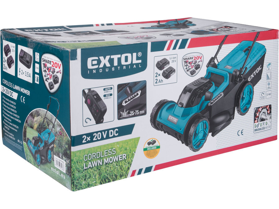 EXTOL INDUSTRIAL 8791902 Kosačka na trávu aku Share20V, 2x2Ah, priemer noža 43cm, bezuh.