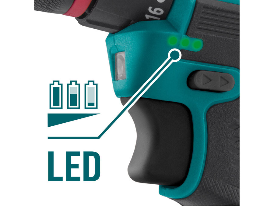 Akumulátorový vŕtací skrutkovač spája vysoký výkon, kompaktné rozmery a modernú technológiu. Je určený na vŕtanie a skrutkovanie v dreve, kove aj plastoch a poskytuje presnú a spoľahlivú prácu. Vďaka hmotnosti 1 kg a malému telu sa ľahko ovláda aj v obmedzených priestoroch. Bezuhlíkový motor zabezpečuje vyššiu účinnosť, dlhšiu životnosť a nižšiu spotrebu energie. V kombinácii so 16V/2Ah Li-ion akumulátorom ponúka dlhú výdrž a plynulý chod. Maximálny krútiaci moment dosahuje 50 Nm na prvej a 25 Nm na druhej rýchlosti. Dvojstupňová prevodovka umožňuje pracovať v režime skrutkovania (0–400/min) alebo vŕtania (0–1350/min) s 20 úrovňami uťahovacieho momentu. Celokovové rýchloupínacie skľučovadlo s aretáciou uľahčuje výmenu nástroja. Náradie zvládne vŕtanie do dreva s priemerom až 25 mm a do ocele 10 mm. Prácu zjednodušuje automatické LED osvetlenie a ergonomická pogumovaná rukoväť. Model Extol Industrial tak predstavuje spoľahlivý nástroj na každodenné aj náročnejšie úlohy.