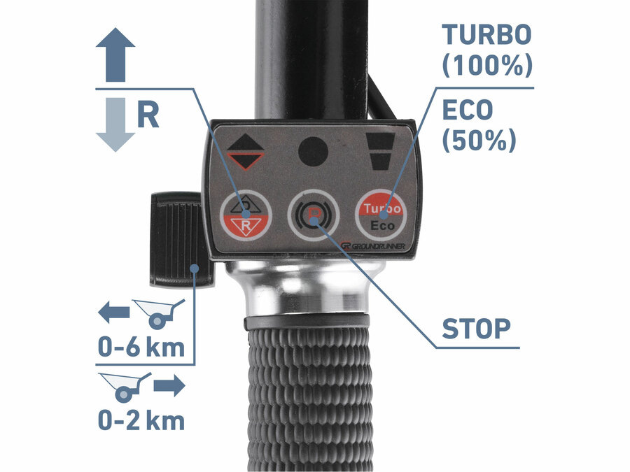 Nákladný akumulátorový dvojkolesový fúrik s pomocným elektrickým pohonom a veľkou plastovou korbou je určený na prepravu sypkých aj pevných materiálov (napr. drevo, rúry, tehly, štrk či stavebné zmesi) v náročnom teréne. Elektrický pohon zrýchľuje manipuláciu a znižuje únavu obsluhy, čím zvyšuje produktivitu práce. Li-ion batéria zároveň výrazne znižuje hmotnosť oproti oloveným variantom. Na pravej rukoväti sa nachádza ovládač pre jednoduché nastavenie smeru jazdy (vpred/vzad), aktiváciu brzdy a voľbu rýchlosti (normálna/Turbo). Bežne sa používa normálny režim, Turbo je vhodné do kopca, v ťažkom teréne alebo pri vyššom zaťažení. Vozík je poháňaný moderným bezuhlíkovým motorom s vyšším výkonom, nižšou spotrebou a dlhšou životnosťou než klasické motory. Prevodovka s diferenciálom zlepšuje priechodnosť terénom a umožňuje otáčanie na mieste. Vďaka umiestneniu ťažiska nad osou kolies nesie väčšinu hmotnosti samotný fúrik, takže obsluha je minimálne zaťažená. Motor je možné odpojiť a používať fúrik aj manuálne alebo pri ťahaní iným vozidlom. Elektrická brzda zaistí bezpečné zastavenie, pneumatiky s hlbokým dezénom zabezpečujú dobrú trakciu. Korba má objem 225l a nosnosť do 400 kg. Zariadenie má krytie IP64, vhodné na dočasnú prácu vo vlhku alebo umývanie, nie však na dlhodobé skladovanie vo vlhkom prostredí. Sklopné rukoväte uľahčujú transport. Napájanie zabezpečuje 40V/6Ah Li-ion akumulátor s LED displejom, ktorý je možné jednoducho vybrať, nabíjať a skladovať. Batéria je chránená proti vybitiu, preťaženiu, prebitiu, skratu aj prehriatiu.