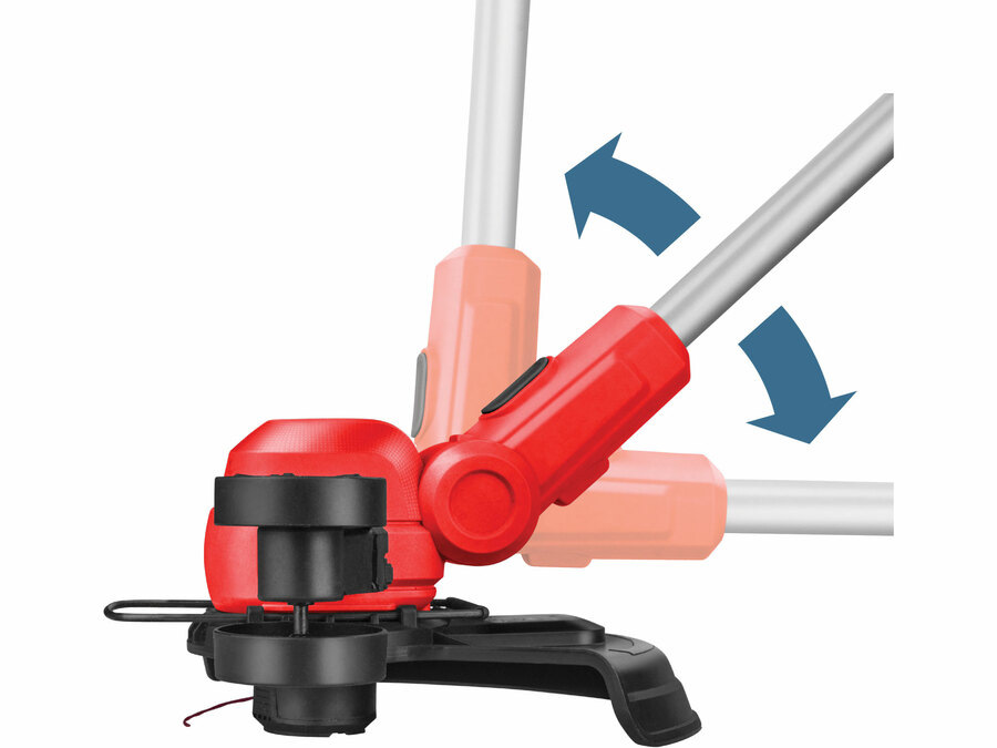 Strunová akumulátorová kosačka je ideálna na pravidelnú údržbu záhradného trávnika, precízne zarovnanie okrajov a kosenie v ťažko dostupných miestach, napr. pri obrubníkoch, pod lavičkami či okolo stromov a kríkov. Na kosačke je možné nastaviť uhol žacej hlavy a tiež ju otočiť o 90° kolmo k zemi, čo uľahčuje kosenie pri okrajoch trávnikov, pozdĺž chodníkov, príjazdových ciest a pod. Teleskopická rukoväť sa dá predĺžiť až o 23 cm, aby sa kosačka prispôsobila používateľom rôznych výšok a umožnila pohodlnú prácu. Strunu môžete predĺžiť dvoma spôsobmi – manuálne stlačením tlačidla na žacej hlave alebo jednoducho poklepom o zem počas práce. Ochranný kryt so zabudovaným nožom navyše automaticky oreže strunu na optimálnu dĺžku. Kosenie pozdĺž plotov, múrov či stromov uľahčuje praktický sklopiteľný dištančný oblúk, ktorý zároveň chráni sekaciu strunu pred nadmerným opotrebením. Napájanie z batérie eliminuje starosti s napájacím káblom, kosačka je tak ľahšia, tichšia a manipulácia s ňou je podstatne pohodlnejšia. Pogumovaná rukoväť zabraňuje vyšmyknutiu, tlmí vibrácie a zvyšuje komfort pri držaní.