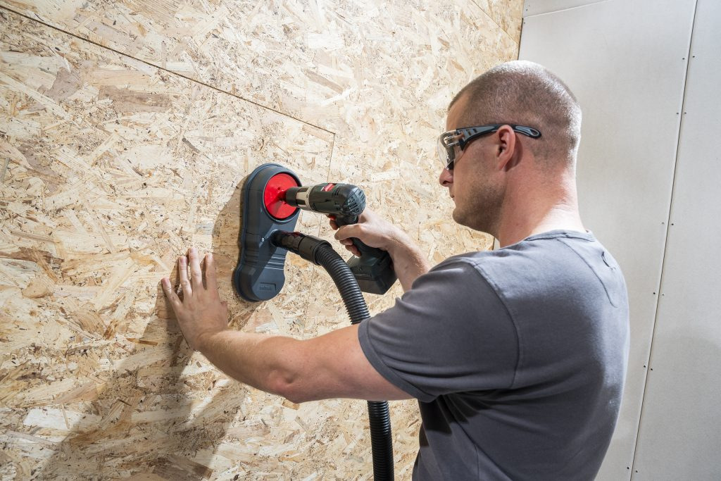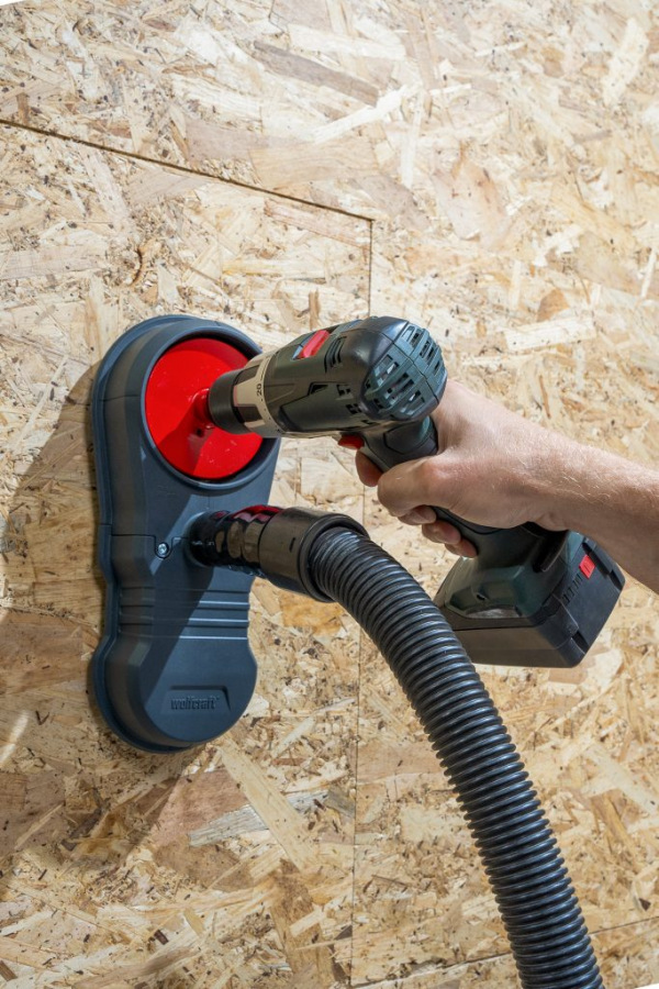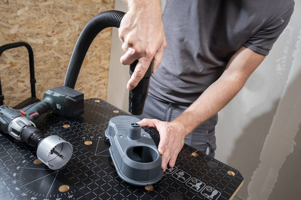 Odsávanie prachu obsahuje základnú jednotku, ktorá v kombinácii s priemyselným vysávačom (minimálne 1 000 wattov) vytvára podtlak a postará sa o bezpečné uchytenie na suchých stavebných materiáloch, betóne, murive a iných hladkých povrchoch. Namontovaná odsávacia jednotka okamžite odvádza vznikajúci prach z vŕtania a malé triesky bez toho, aby sa častice dostali do kontaktu so stenou.