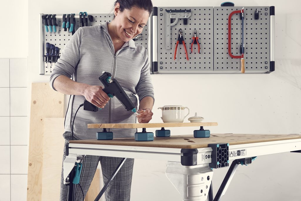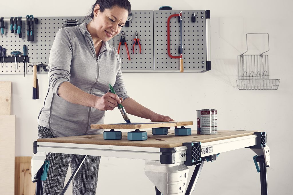Multifunkčné držiaky pre pracovné stoly. Protišmykové podpery pre obrobky, 4 podpery pre obrobky s protišmykovou penovou gumou na hornej a dolnej strane pre bezpečné uchytenie. Multifunkčný na univerzálne použitie v dielni, garáži, na pracovisku alebo na stavenisku. 20mm držiaky na upevnenie v pracovných stoloch a upínacích stoloch s 20mm otvormi pre dodatočné uchytenie, šesťhranný tvar vytvára kontaktné hrany pre ďalšie použitie ako upínacie čeľuste v upínacích stoloch. Obsahuje obojstranný modul s hrotom pre takmer bezkontaktné umiestnenie pri lakovaní a čapový nástavec pre zvýšenie polohy obrobku.