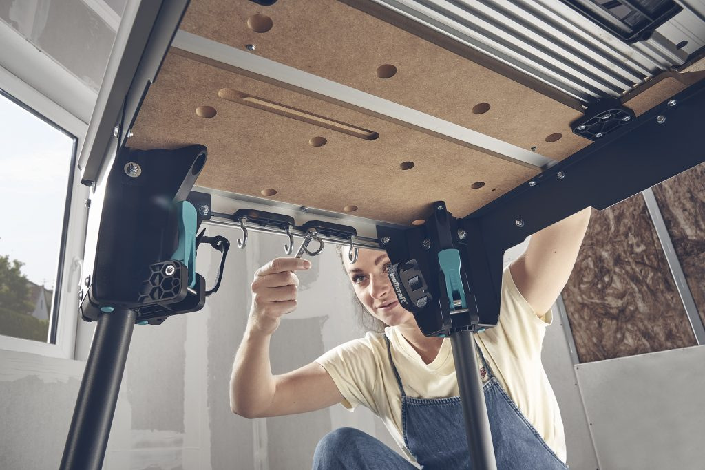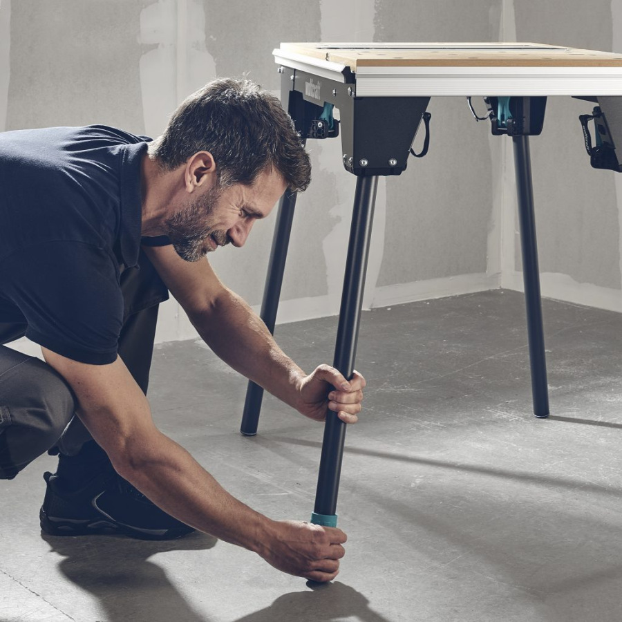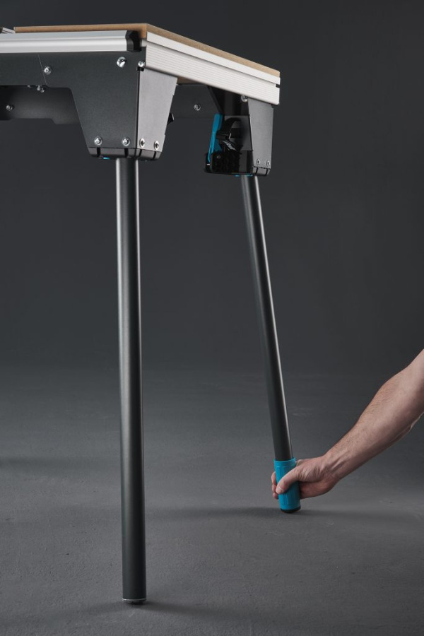 Vďaka veľmi kompaktným prepravným rozmerom 800 x 580 x 200 mm a nízkej hmotnosti 17 kg je mobilný, možno ho používať kdekoľvek a je priestorovo úsporný na skladovanie. Nohy sa dajú flexibilne spájať a rozpojovať pomocou zaťahovacieho mechanizmu s rýchloupínacou vačkovou pákou, napr. pri preprave alebo práci na zemi. Po odpojení nôh ich možno uložiť do záchytných úchytov pod doskou stola, kde sa dajú zaistiť pomocou popruhov s háčikmi a slučkami.