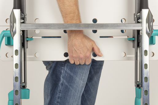 Ako upínací stôl vám MASTER 750 ERGO ponúka horizontálny rozstup 130 mm medzi doskami stola a 425 mm medzi štyrmi veľkými plastovými upínacími čeľusťami, ktoré sú súčasťou dodávky. S nastavením maximálnej výšky môžete bez problémov upínať aj obrobky do šírky 110 mm vertikálne. Upínacie čeľuste majú obojstranný lakovací hrot, ktorý vám uľahčí lakovanie obrobkov časovo úsporným spôsobom. Ak chcete zdvihnúť obrobok, použite stranu s oporným kolíkom s protišmykovou podperou. S dvoma prídavnými rúrkovými svorkami môžete spoľahlivo pridržiavať aj zaoblené obrobky.