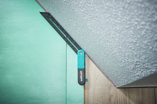 Pomôcka na meranie uhlov je chytré riešenie pre presné a pohodlné meranie uhlov s následným prenosom na obrobok - ideálne pre pokládku alebo pri konštrukcii nábytku. Prvým krokom je zasunutie dvoch plastových nôh do rohu steny a ich zarovnanie pozdĺž stien. Na zabezpečenie tejto polohy použite zaisťovaciu páku. Je navrhnutý tak, aby ho bolo možné ľahko ovládať z oboch strán iba jednou rukou, a to aj v úzkych pracovných oblastiach. V ďalšom kroku umiestnite uhol skosenia na obrobok a nakreslíte uhol. Uhol skosenia je tiež výborne vhodný pre použitie ako veľkosť zdvihu (označenie rovnobežných čiar). Mierka na pohyblivé nohe a vodiace otvor pre ceruzku Vám uľahčia prácu. Jednoducho umiestnite doraz, vložte kolík a veďte uhol skosenia cez obrobok.