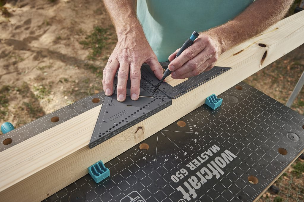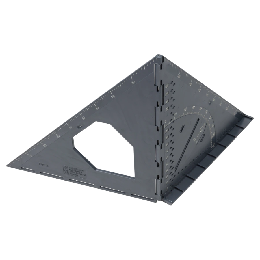 Milimetrová stupnica, zarážky pre uhly 45° a 90° a stupnica pre ľubovoľný uhol od 0° do 180° umožňujú presné nastavenie a presné značenie. Okrem toho možno merací a vytyčovací uholník použiť ako pravítko na vytyčovanie dokonalých rovnobežných čiar.