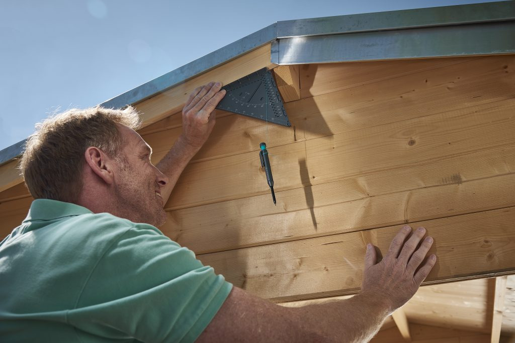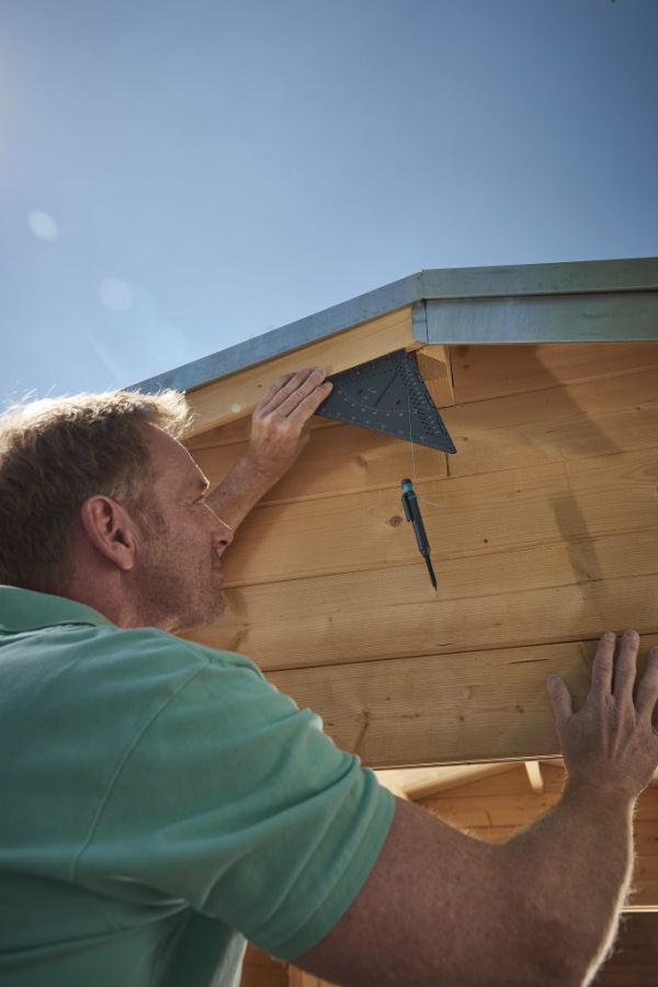 Merací a rysovací uholník VARIO 3D Pro obstojí aj pri aplikáciách, ako je určovanie uhlov sklonu, napríklad pri šikmých strechách. Integrovaná olovnica vám pomôže odčítať stupne priamo na uhlovej stupnici.