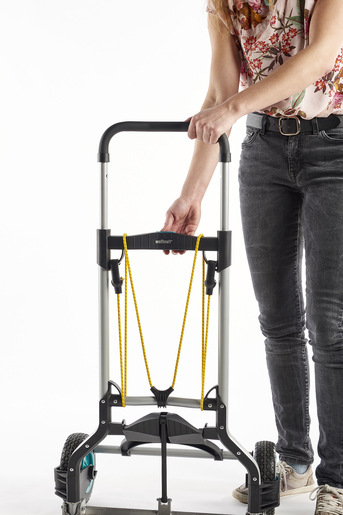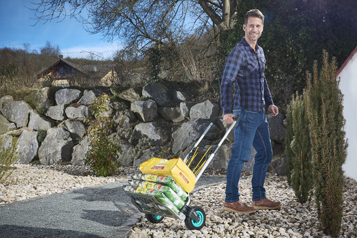 Či už na stavenisku, v záhrade alebo v lese - čím dobrodružnejšie je terén, tým väčšia je radosť z terénneho dopravného systému vlkařů. S nosnosťou až 100 kg uľahčuje TS 850 Offroad prepravu ťažkých predmetov vonku. Extra široká profilová kolesá odolná proti prepichnutiu o priemere 18 cm sú ideálne pre záhradu i vonku. Posilnením nosičov bicyklov získate výhodu vysokej stability a tlmenie nárazov. Jednoducho preklopte stabilný priečku a môžete začať. S nákladom môžete bezpečne a bezpečne manévrovať aj na mäkkých podlahách a schodoch. Masívny liata hliníková lopata s rozmermi 49 x 28 cm ponúka dostatok miesta pre náklad. Dva vzpery vzadu drží váš tovar v tranzite a tiež optimálne drží guľaté predmety, ako sú kvetináče alebo plynové fľaše. Vďaka mechanizmu rýchleho uvoľnenia je TS 850 Outdoor pripravený na použitie v žiadnom momente. Zaguľatená pogumovaná riadidlá možné predĺžiť až do 110 cm pre únavovú a ergonomickú prepravu. Vďaka zaoblené rukoväte budú mať vaše ruky dostatok miesta pre prepravu vysokých objemných predmetov. Keď je zložený, šetrí priestor rozmery štíhle 50 x 82 x 7,7 cm - ideálna pre záhradné prístrešok alebo malý kmeň.